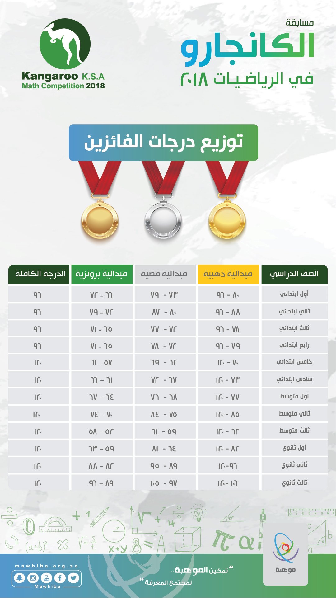 نتائج مسابقة الكانجارو 2019. ويمكن الاستعلام عن النتئجة عن طريق الدخول للرابط التالي. عباس الأمرد أعلنت موهبة صباح اليوم نتائج مسابقة الكانجارو للرياضيات. الأول والثاني الإبتد ائي. تعد مسابقة الكانجارو للرياضيات من أكبر المسابقات التي تقام في أكثر من 70 دولة حول العالم لقرابة 6 ملايين طالب تستهدف المسابقة الطلبة من الصف الأول الإبتدائي إلى الصف الثالث الثانوي.