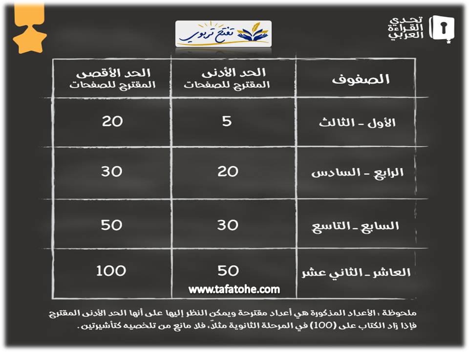 معايير الكتاب المقروء و عدد الصفحات في تحدي القراءة العربي 2020