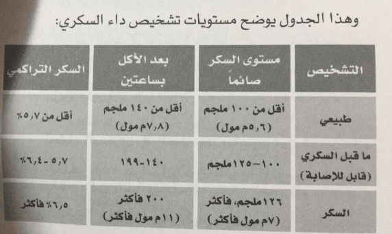 جدول معدل السكر الطبيعي حسب العمر صائم وفاطر وعشوائي