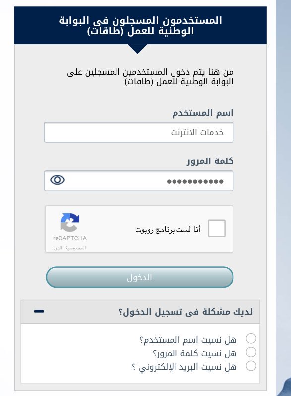 نسيت كلمة المرور في طاقات. تغيير كلمة المرور طاقات اهلا بكم في موقع نصائح من أجل الحصول على المساعدة في ايجاد معلومات دقيقة قدر الإمكان من خلال إجابات وتعليقات الاخرين الذين يمتلكون الخبرة والمعرفة بخصوص هذا السؤال التالي. طريقة استرجاع كلمة المرور للمستفيدين من طاقات 107. طريقة حجز موعد في الاحوال المدنية بدون التسجيل في. نسيت كلمه المرور واسم المستخدم في نطاقات حافز إستفسارات ونقاشات الله يسعدكم قدمت وكله تمام الحين رجعنا لصفحه الدخول واحاول ادخل كلمه المرور واسم المستخدم تطلع غلط كيف اضغط استرجاع ولما اضغط خانه نسيت كلمه المرور.