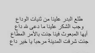 نشيد رائع طلع البدر علينا من ثنيات الوداع وجب الشكر علينا ما دعى لله داع أيها المبعوث فينا جئت بالأمر المطاع جئت شرفت المدينة مرحبا يا خير داع طلع النور المبين نور خير المرسلين. كلمات انشودة طلع البدر علينا للاطفال مكتوبة من أجمل الاناشيد الإسلامية هى من الأناشيد التي ارتبطت بذكرى الهجرة النبوية واختلف المؤرخون في صحة نسبها لأهل المدينة حين استقبلوا النبي. طلع البدر نبيا. أما ما قاله الدكتور أكرم ضياء العمري في كتابه السيرة النبوية الصحيحة أما تلك الروايات التي تفيد استقباله عليه السلام بنشيد طلع البدر علينا فلم ترد بها روايات صحيحة علما بأن الرواية ضعيفة جدا لكونها من رواية.