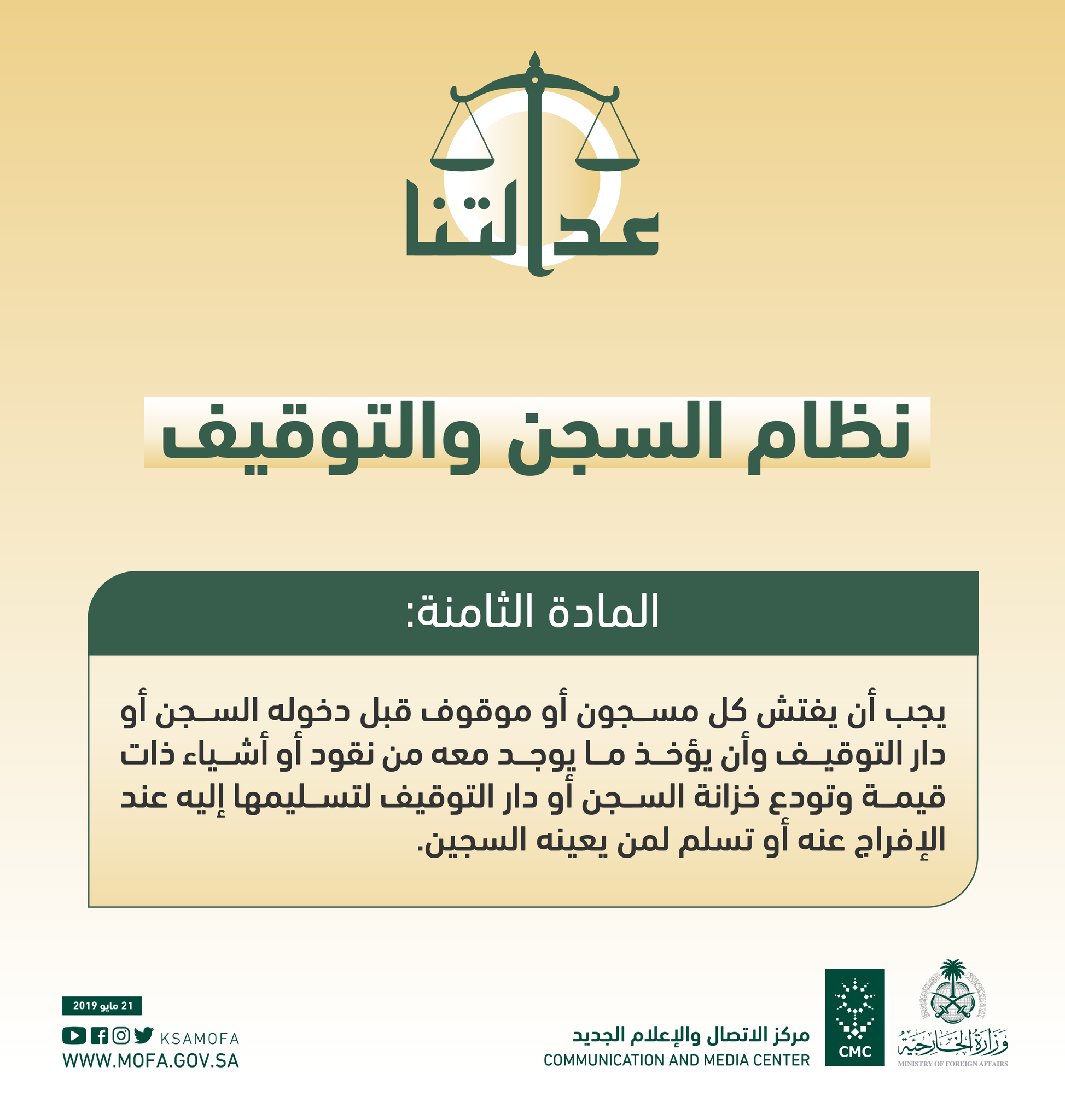 أن مشروع النظام الجديد للسجن والتوقيف يدعم حفظ حقوق نزلاء ونزيلات السجون. إلى المتهم نفسه أو في مكان إقامته وفقا للقواعد المقررة في نظام المرافعات الشرعية. بعد الاطلاع على مشروع نظام السجن والتوقيف المرفوع من سمو وزير الداخلية والدراسات التي أجريت عليه. نظام السجن والتوقيف السعودي.