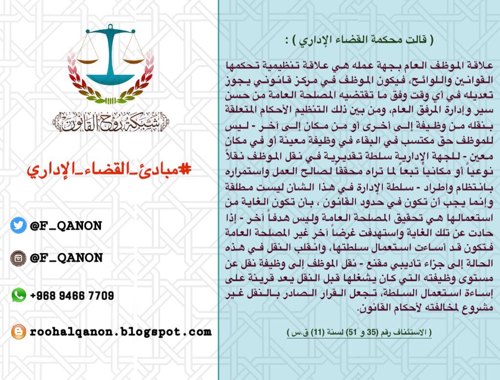 نقل الموظف دون رضاه. أجازت وزارة الخدمة المدنية لكل الجهات الحكومية إمكانية نقل الموظف خارج المقر الذي يعمل فيه لمصلحة العمل وأكدت الوزارة أنه لا ت ش ت ر ط موافقة الموظف في حالة الحاجة إلى نقله لأي مكان خارج المدينة أو م ق ر. يحق للادارة اذا ما رات او اقتضت الضرورة نقل موظف الى مكان عمل اخر لكن مع مراعاة موافقة الموظف مع توفيق اوضاعه اما اذا لم يرغب بذلك الموظف يجب عليه الابلاغ عن سبب رفض النقل مع ابداء الاسباب. وهناك وظائف يمكن للجهات الحكومية النقل منها وإليها دون التنسيق مع وزارة الخدمة المدنية وتشمل مائة واثنتين وتسعين سلسلة وظيفية. نقل مكفوف اليد من وظيفة إلى أخرى.