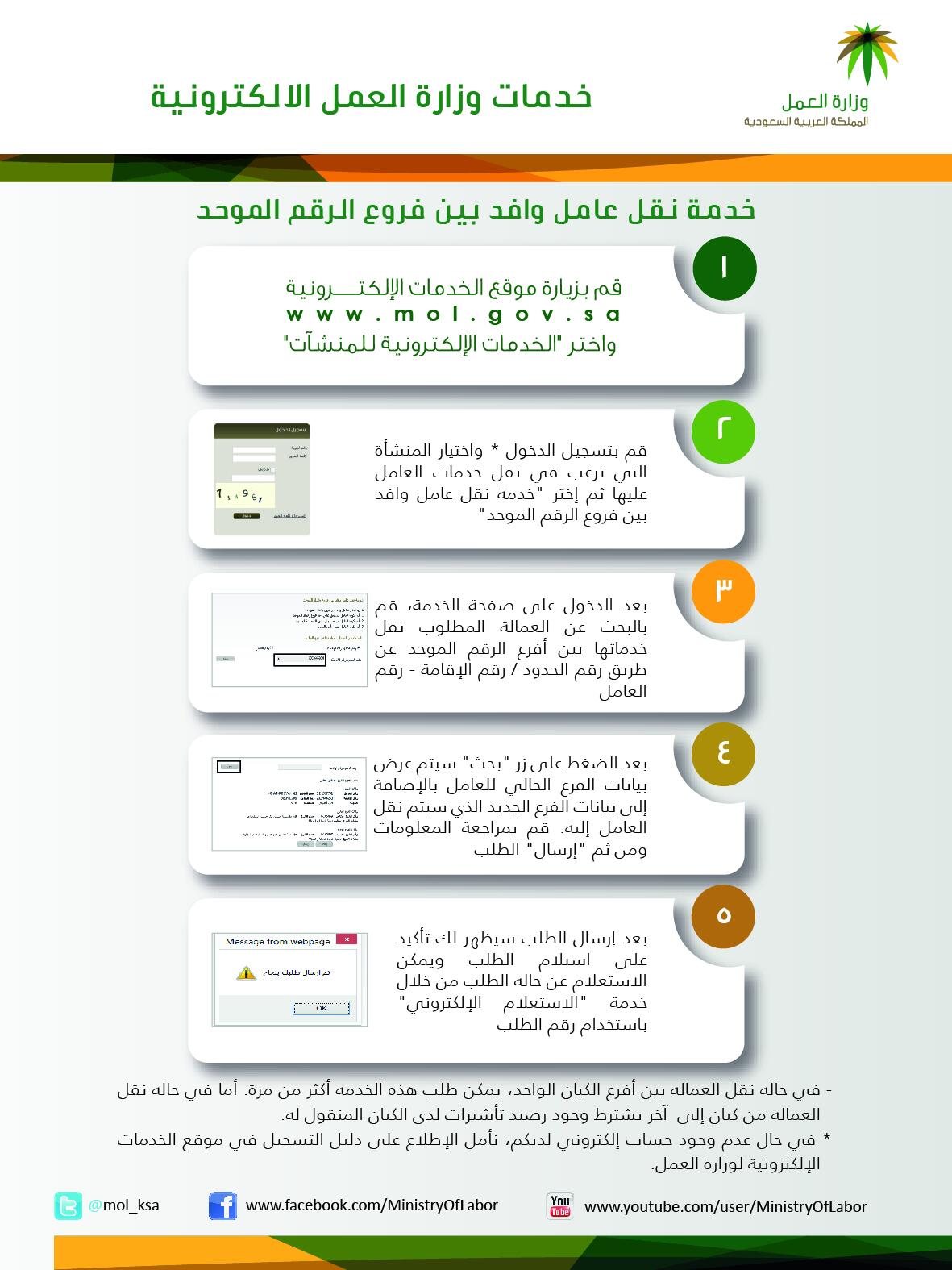 نقل عامل وافد بين فروع رقمك الموحد. نقل خدمة عامل وافد بين فروع الرقم الموحد التفصيل كاملة http www saudigenral info 2017 04 transfer. نقل عامل وافد بين فروع الرقم الموحد للمزيد من المعلومات تاريخ أخر تحديث. نقل عامل وافد بين فروع الرقم الموحد وزارة الموارد البشرية والتنمية الاجتماعية خدمة إلكترونية تقدمها وزارة العمل والتنمية الاجتماعية تمكن المنشآت من تقديم طلب نقل خدمات عامل بين أفرعها التابعة لنفس الكيان لدى الوزارة. المملكة العربية السعودية ١١ ١٩ ٥٩ ص ١٤٤٢ ٠٣ ١١.