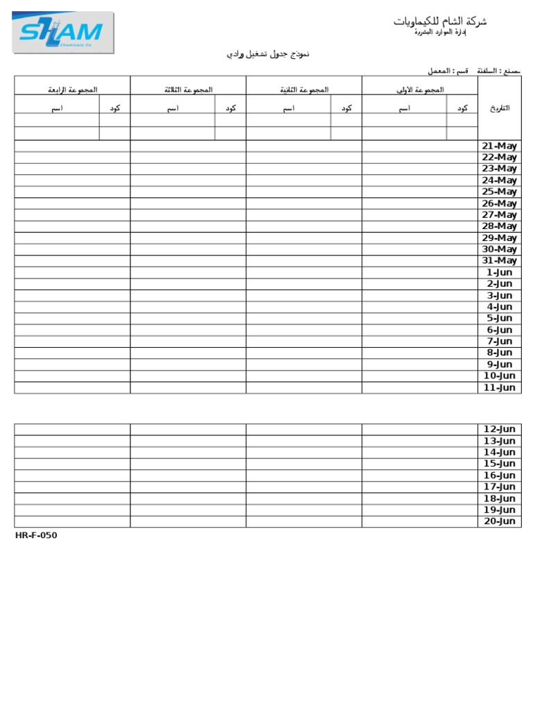 يمكنك التخطيط لجدول العمل الخاص بالشركة باستخدام هذا القالب الذي يمكن الوصول إليه والذي يغطي ورديات مدتها 8 ساعات لـ 6 موظفين خلال 7 أيام. نموذج تقيم اداء موظف slideshare uses cookies to improve functionality and performance and to provide you with relevant advertising. نموذج و جدول خطة الاجازات السنوية مميز جدا نموذج وصف وظيفة نموذج يدوي نموذج لضبط حركة خروج ودخول الموظفين خلال ساعات الدوام مهمة عمل.