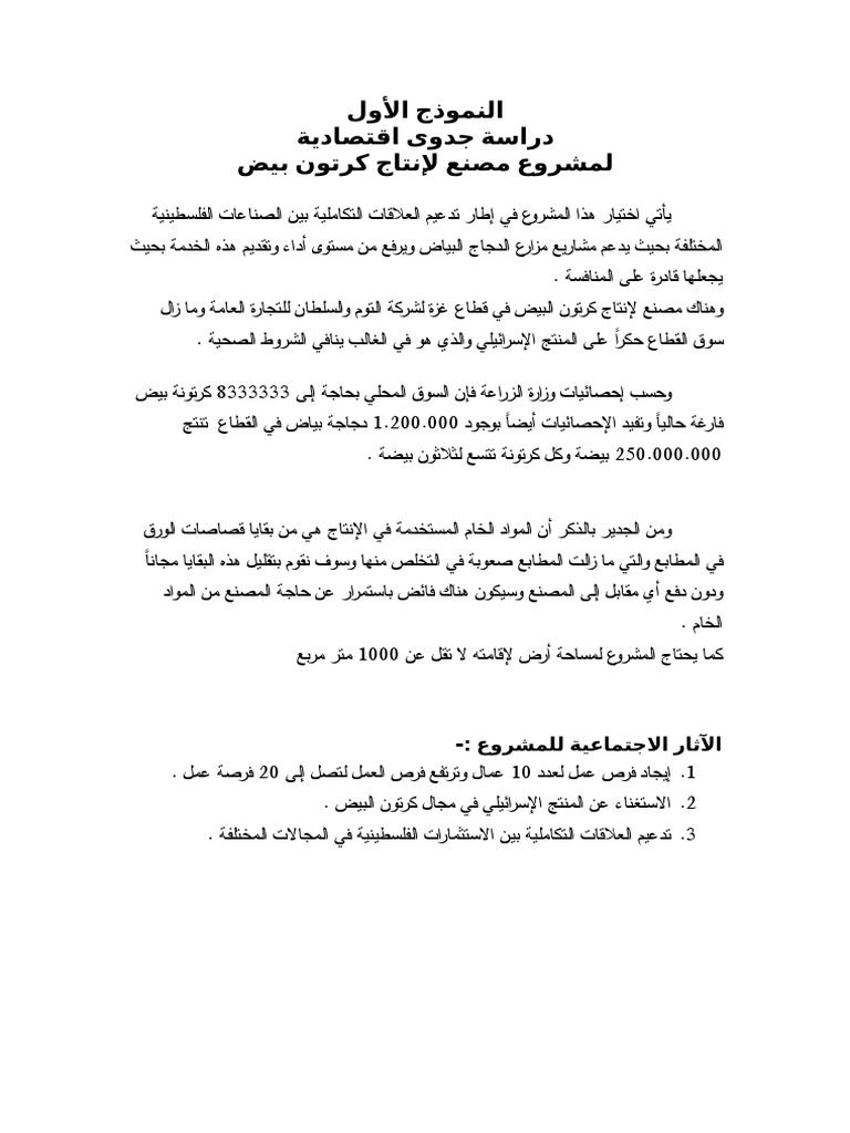 نموذج دراسة جدوى مشروع زراعي