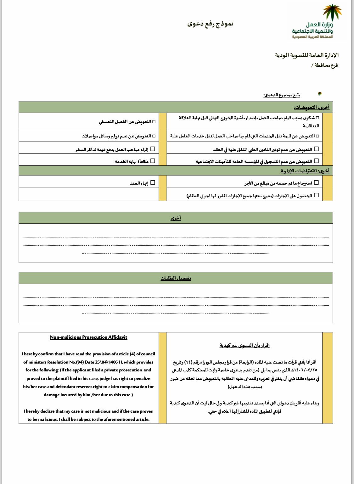 نموذج رفع دعوى قضائية مكتب الصفوة للمحاماة والاستشارات القانونية