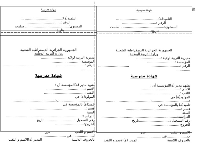 نموذج شهادة مدرسية فارغة