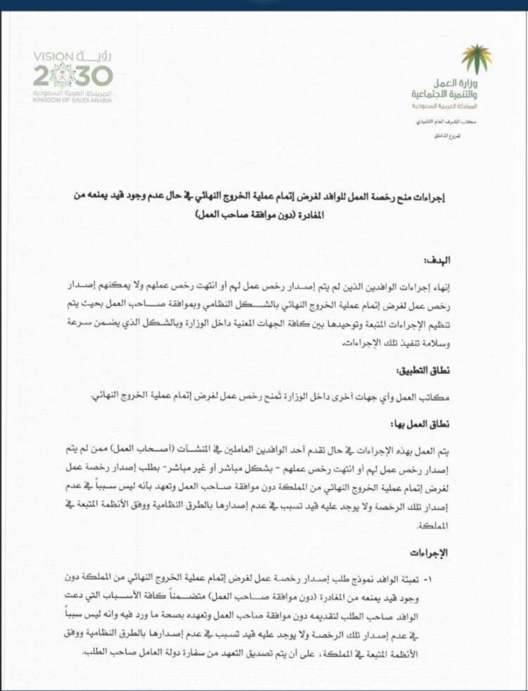 نموذج طلب اصدار رخصة عمل بغرض الخروج النهائي. اختر العمالة التي سيقوم بإصدار أو تجديد الرخصة لهم. تنشر الدستور الضوابط التى حددها قانون العمل السعودي بشأن إصدار رخص العمل لغرض إتمام عملية الخروج النهائي من المملكة وذلك للعمالة التي لم يتم إصدار رخصة عمل لهم أو انتهت رخص عملهم وذلك وفق ا لما. يحسب النظام المقابل المالي ومن ثم انقر على إرسال. متاريس علمت متاريس إن وزارة العمل السعودية تستعد لوضع اللمسات الأخيرة على نظام جديد يمكن السودانيين من إصدار رخصة عمل لغرض الخروج النهائي نظاميا بدون موافقة صاحب العمل وذلك في حال عدم وجود.
