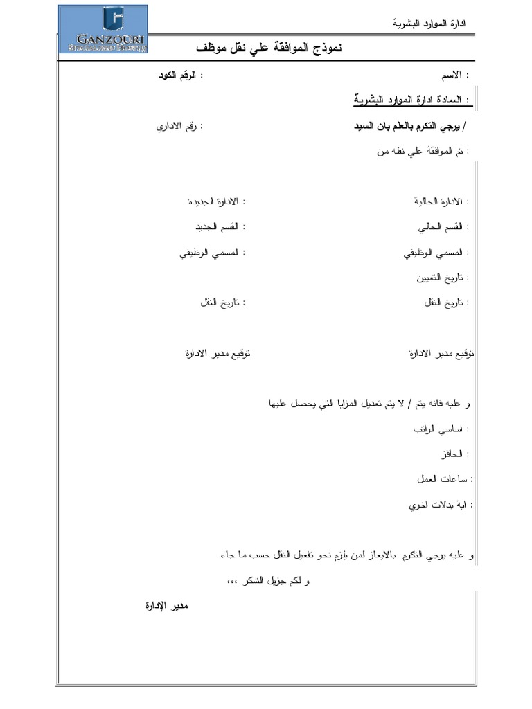 نموذج طلب نقل موظف doc. اكثر من 1000 نموذج جاهز للتحميل اكسيل وورد موقع المحاسب المعتمد نماذج محاسبية نماذج ادارية نماذج شؤون موظفين نماذج تسويق نماذج للمستودعات. نموذج اعلان عن وظيفة شاغرة. دائم ا ما يتم استخدام ملفات الوورد الخاصة بمعالجة النصوص وإجراء التحرير عليها في أي وقت عند الرغبة في استخدام نموذج خطاب نقل موظف او موظفة من منطقة لاخرى أو من إدارة.