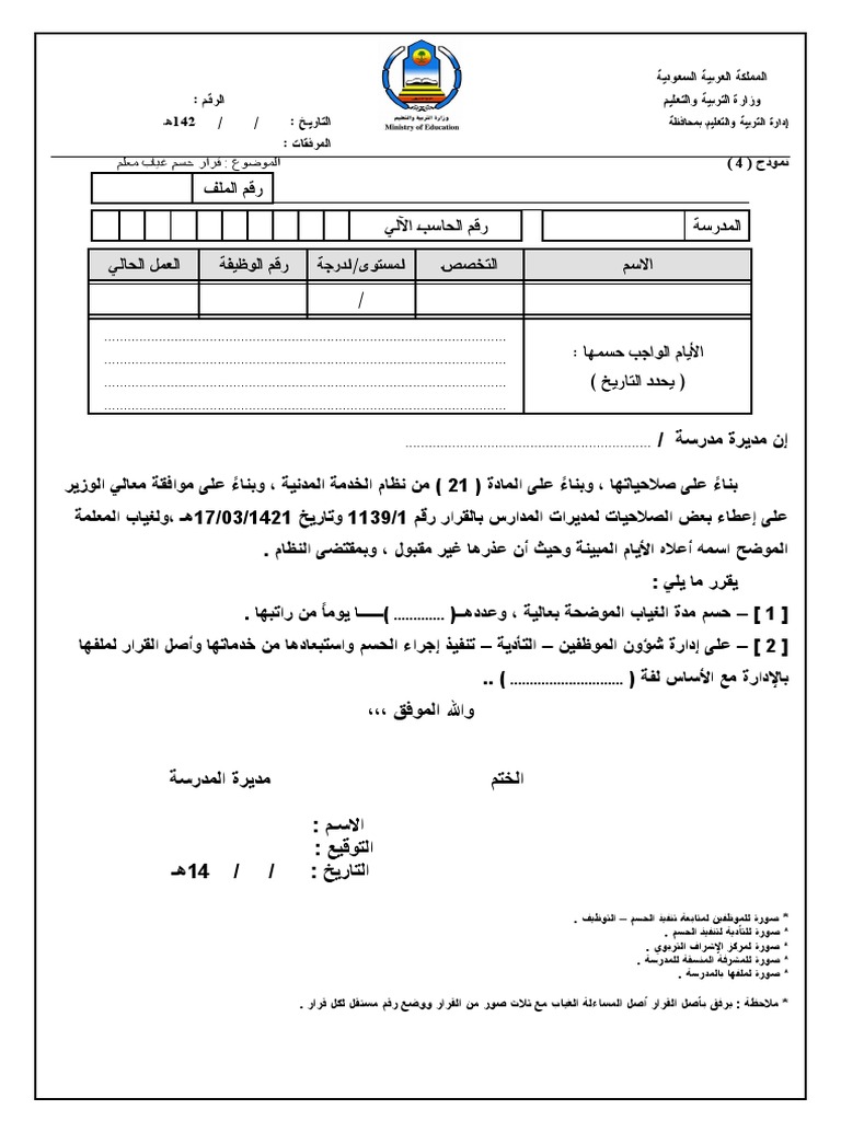 نموذج لفت نظر للموظفين وما هي أهم النماذج التي يمكن استخدامها عندما يتم توجيه خطاب ما إلى أحد الموظفين الموجودين داخل الشركة أو المؤسسة التي يعمل بها ذلك الموظف. نموذج مساؤلة غياب معلم. نموذج مساءلة موظفة متأخرة للتحميل المباشر المجاني لكل من يرغب في الحصول عليها بسهولة ويسر لكل من يعمل في مجال التعليم بالمملكة. أرجو تحميل النموذج من المرفقات.