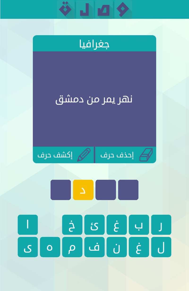 حل سؤال نهر يمر من دمشق لغز رقم 94 من لعبة وصلة للمجموعة الحادى عشر المواضيع المتشابهة حل سؤال معانى ومفردات جعبة صغيرة توضع فيها النبال الاسهم مكونة من 5 حروف. المجموعة الثالثة لغز رقم 20. نهر يمر من دمشق.