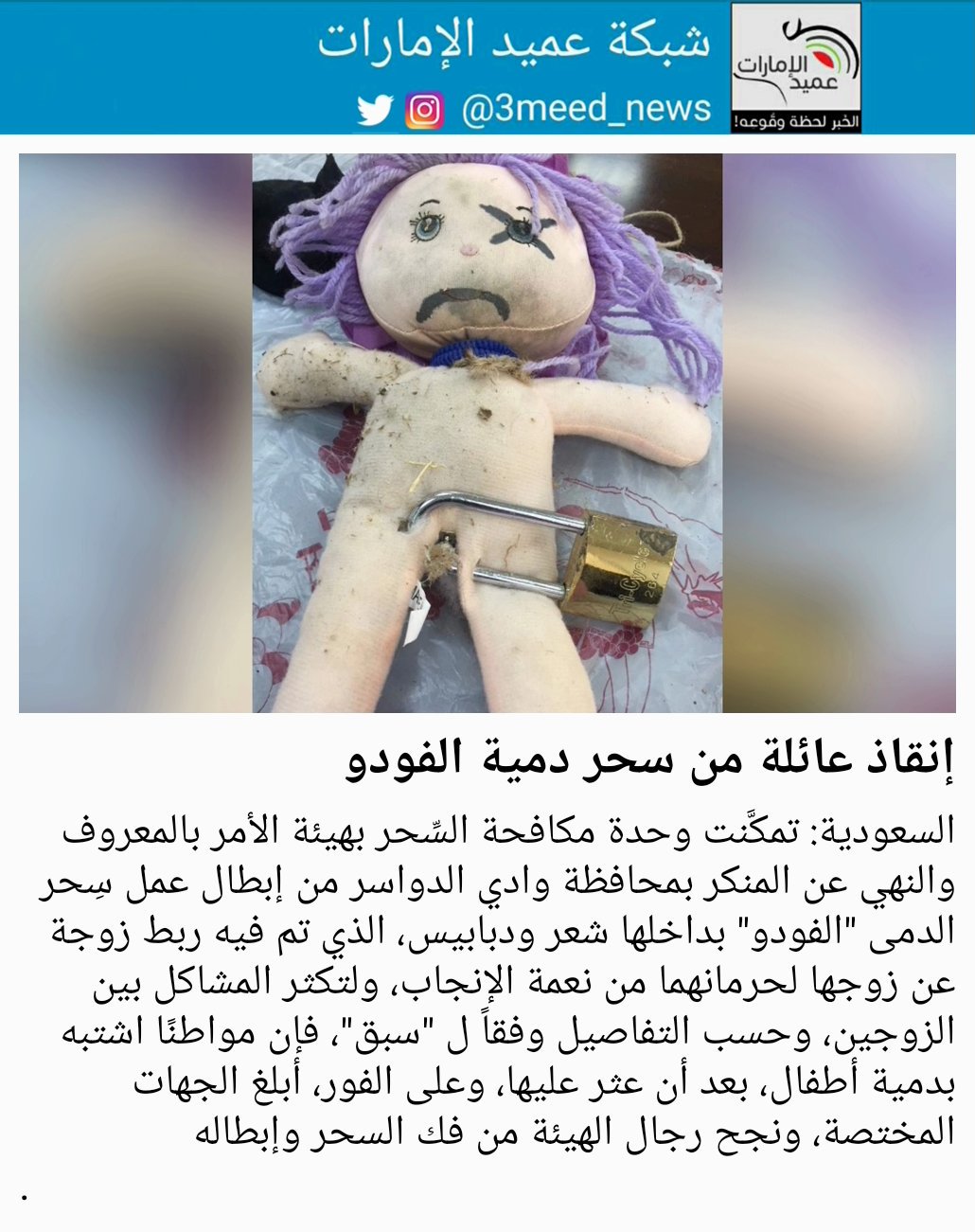 Added By Yasiuae Instagram Post السعودية شعر ودبابيس وقفل حديدي بدمية أطفال تقود سعوديا لإنقاذ عائلة من س حر الفودو الأصعب تمك نت وحدة مكافحة الس حر بهيئة الأمر بالمعروف والنهي عن المنكر بمحافظة