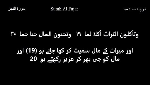 ك لا ب ل لا ت ك ر م ون ال ي ت يم 17 و لا ت ح اض ون ع لى ط عام ال م س ك ين 18 و ت أ ك ل ون الت راث أ ك لا ل م ا 19 و ت ح ب ون ال مال ح ب ا ج م ا 20.