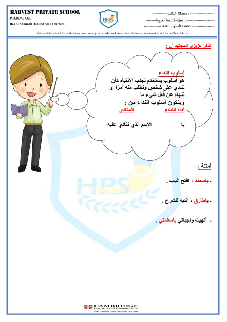 ورقة عمل عن اسلوب النداء لمادة اللغة العربية الصف الثالث الفصل الثاني منتديات صقر الجنوب