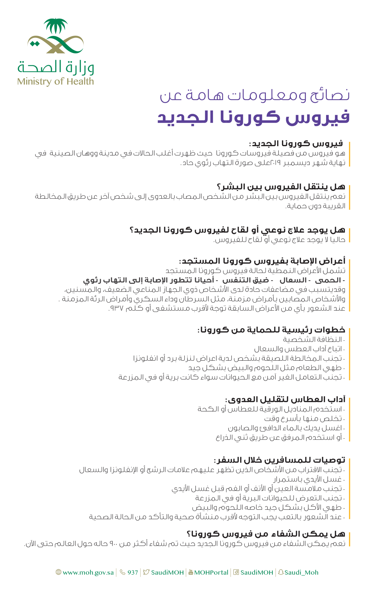 و ز ا ر ة ا لـ صـ حـ ة السعودية Pa Twitter نصائح ومعلومات هامة عن فيروس كورونا الجديد