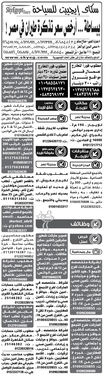 وظائف جريدة الوسيط اليوم الجمعة 5 ابريل 5 4 2019 وظائف وسيط القاهرة و الجيزة