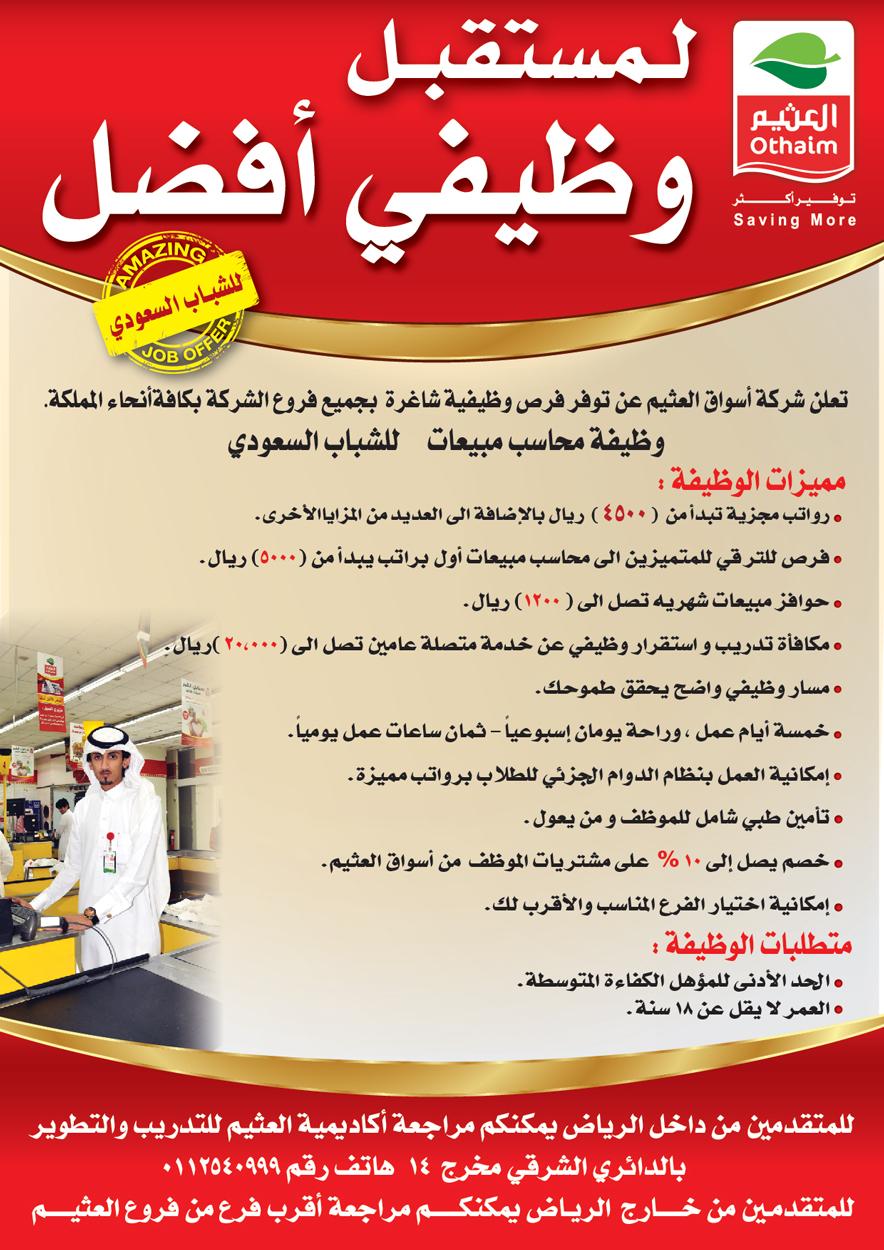 وظائف العثيم دوام جزئي. توفر وظائف شاغرة بدوام جزئي للرجال والنساء يشركة أسواق التميمي بعدة مدن بالمملكة الرياض الدمام الخبر الظهران الجبيل حفر الباطن بالمسميات التالية م حاسب زبائن وم حاسبة زبائن وذلك وفقا لبقية التفاصيل. جميع الوظائف من خلال بحث واحد. وظائف موسمية في موسم الحج 1436. تعلن شركة عبدالله العثيم وظائف إدارية وقانونية شاغرة في مدينة الرياض بالمسميات التالية مدير التسويق وأخصائي توظيف ومستشار قانوني ومراجع داخلي وذلك وفقا لطريقة التقديم والشروط الموضحة أدناه.