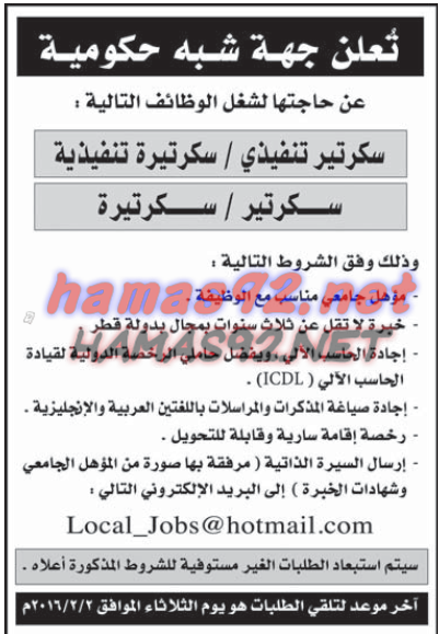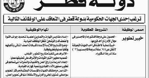 وظائف حكومية يومية وظائف فى قطر وظائف احدى الجهات الحكومية فى قطر