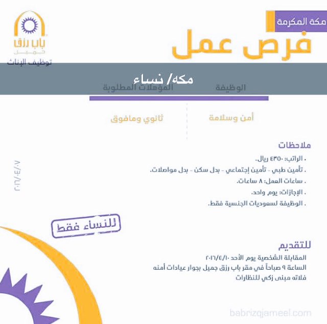 وظائف نسائية بمكة في السعودية مكة السعودية مطلوب معد قهوة باريستا السعودية مكة ٣٠ أكتوبر ٢٠٢٠.