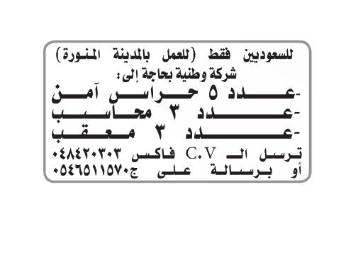 وظائف محاسبين بالمدينة المنورة