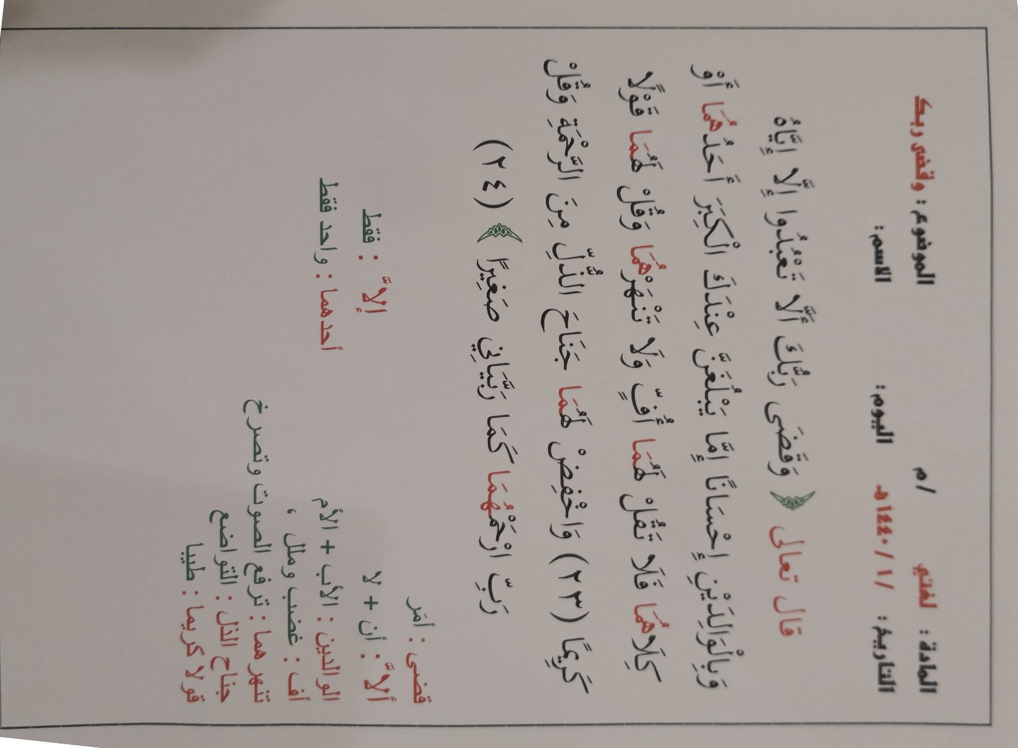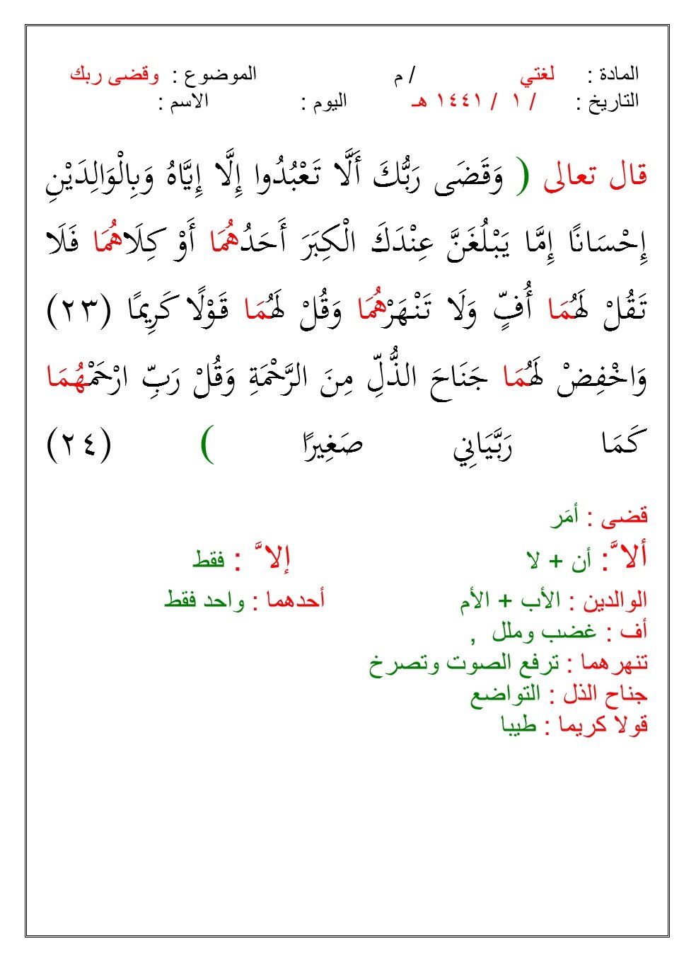 الفهم القرائي وقضى ربك وحدة حقوق وواجبات ص23 المصدر السعودي
