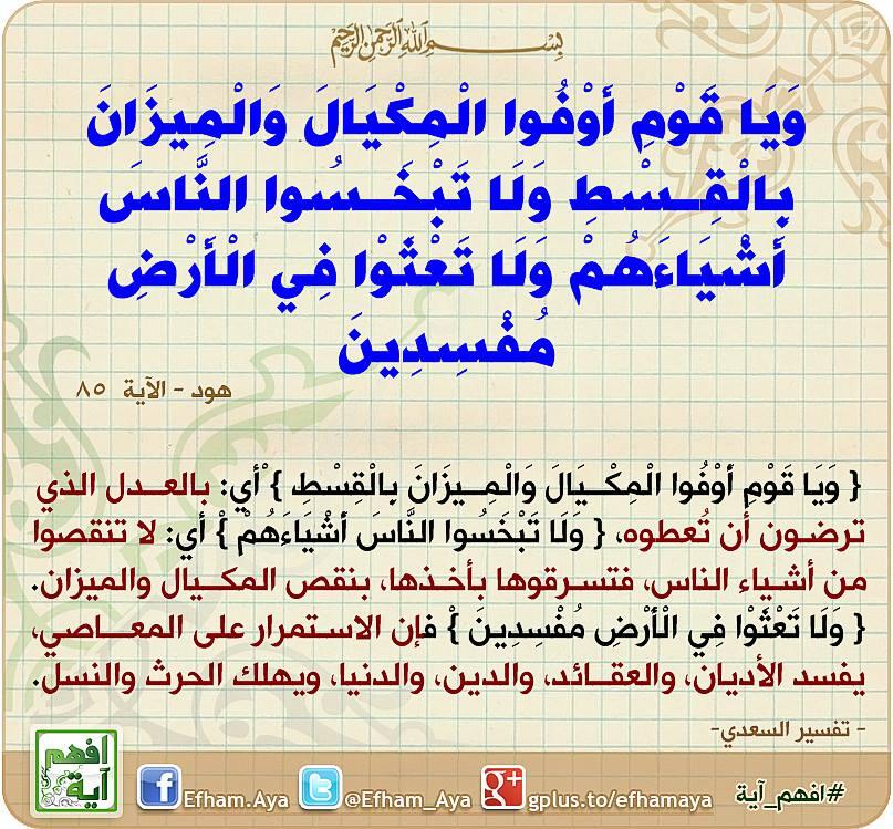 شيء فمن بخس الناس أشياءهم في أموالهم أو. و ي ا ق و م أ و ف وا ال م ك ي ال و ال م يز ان ب ال ق س ط و ل ا ت ب خ س وا الن اس أ ش ي اء ه م و ل ا ت ع ث و ا ف ي ال أ ر ض م ف س د ين. And do not spread evil in the land. English tafheem maududi.