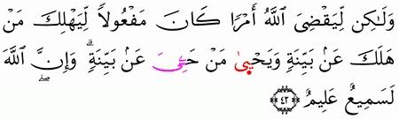 Last updated أغسطس 13 2016. ولكن ليهلك من هلك عن بينة ج م عكم. إ ذ أ ن ت م ب ال ع د و ة الد ن ي ا و ه م ب ال ع د و ة ال ق ص و ى و الر ك ب أ س ف ل م ن ك م و ل و ت و اع د ت م ل اخ ت ل ف ت م ف ي ال م يع اد و ل ك ن ل ي ق ض ي الل ه أ م ر ا ك ان م ف ع ول ا. قللتكم أيها المؤمنون في أعين المشركين وأريتكموهم في أعينكم قليلا حتى يقضي الله بينكم ما قضى من قتال بعضكم بعضا وإظهاركم أيها المؤمنون على أعدائكم من.