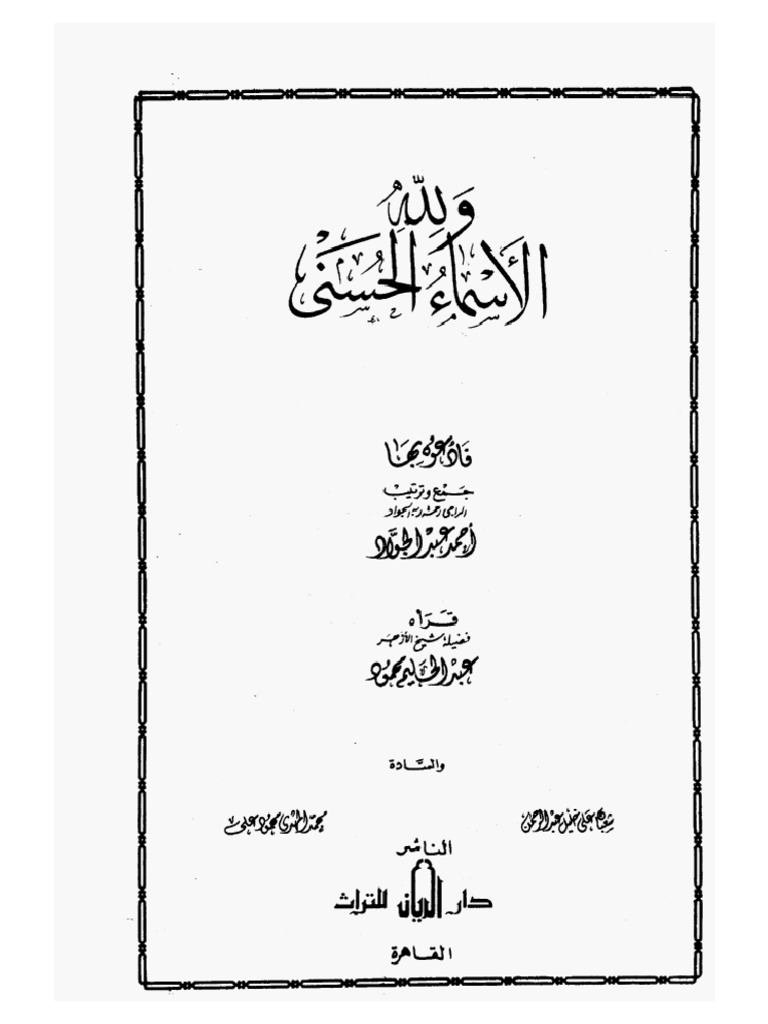 ولله الاسماء الحسنى فادعوه بها pdf. في ظلال هذه الآيات ومع إشراقاتها نعيش مع الأسماء الحسنى والصفات العليا فهى طريق الوصول إلى الله مصداقا لقول الله تعالى. اقتصرنا على الأسماء فقط لعدم توفر الفصل الأول والثاني مصورا من الكتاب. عبد العزيز بن ناصر الجليل عدد المشاهدات. ولله الأسماء الحسنى المؤلف.